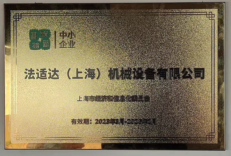 法適達(上海)機械設備有限公司榮獲上海市經(jīng)濟和信息化委員會頒發(fā)的《上海市專精特新中小企業(yè)》牌匾