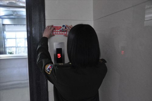 隨著人民群眾生活水平的提高,電梯的使用頻率也逐漸增多,如果發(fā)生火災(zāi)時,群眾盲目搭乘電梯,就會導(dǎo)致意外發(fā)生,由此可見電梯的消防安全工作不容小覷。為此,分局宣傳人員以“5+2”的宣傳模式,利用周末時間深入轄區(qū)各場所對“電梯消防安全提示牌”進(jìn)行張貼。宣傳人員先后來到燕山花苑小區(qū)、金海灣小區(qū)、金田大酒店、溢香國際大酒店、海逸酒店等各個場所,在張貼的同時,宣傳人員還耐心細(xì)致地向各場所負(fù)責(zé)人詳細(xì)說明了發(fā)生火災(zāi)時使用電梯所造成的意外事件和危害性,提醒其發(fā)生火災(zāi)時千萬不要乘坐電梯。